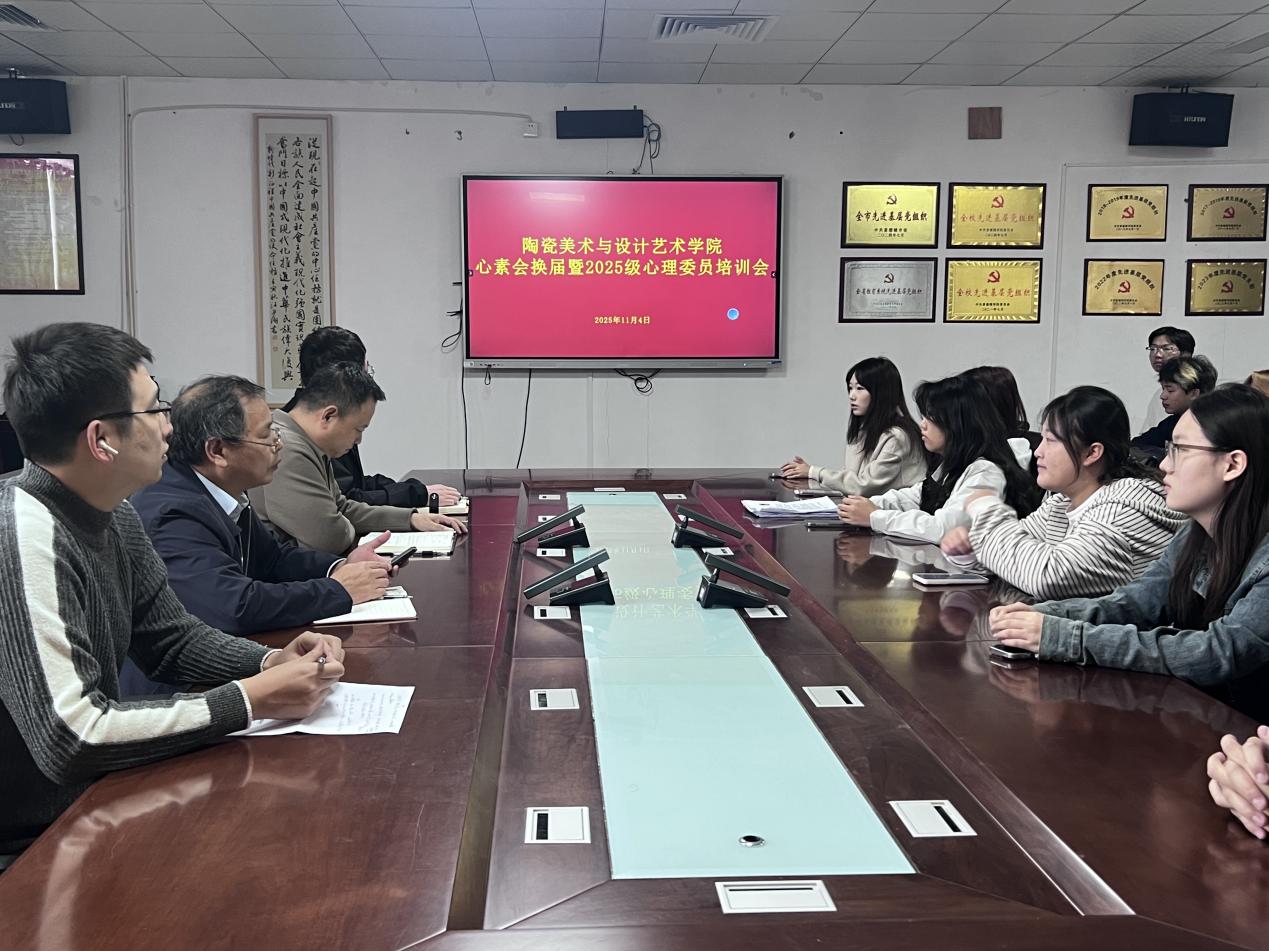 为进一步加强学院心理健康教育工作队伍建设,明确心理委员的职责与使命,提升心理委员工作胜任力,构建和谐、安全、健康的校园文化氛围。11月4日,陶瓷美术与设计艺术学院心素会第七届换届大会暨2025级心理委员培训会于党员活动室如期召开,学院党委书记陈后辉,党委副书记、纪委书记、心理辅导站站长胡文毅出席会议,学工科副科长、心理辅导站副站长张朋,心素会指导老师朱顺翔,心素会部门成员及全体25级心理委员参加会议,会议由朱顺翔主持。...