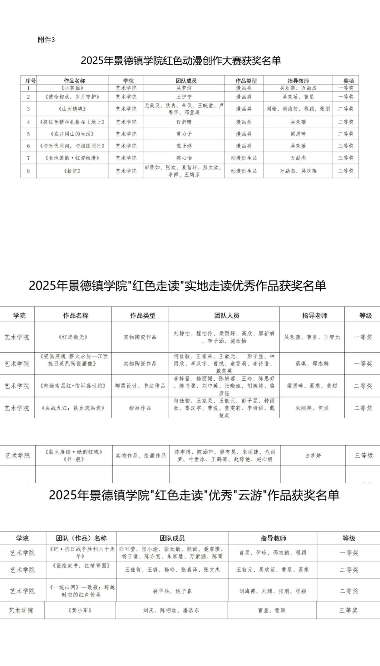为深入贯彻落实党的二十大精神、党的二十届四中全会精神及习近平总书记相关重要论述,引导青年学子厚植家国情怀,陶瓷美术与艺术设计学院以“线上+线下”融合模式组织开展“传承红色基因 强国复兴有我”红色走读系列活动,各年级团支部极响应,学生们踊跃参与,通过走进革命旧址、线上深挖红色故事、创作艺术作品等多种形式传承红色血脉,涌现出大批优秀成果,充分展现了我院青年的理想信念与精神风貌;经学院推荐、学校评审,本次活动评选结果已确定,...