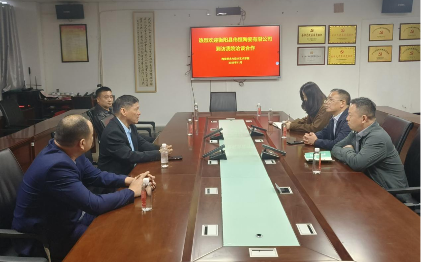 为深化产教融合、促进校企协同发展,精准对接行业需求,拓宽就业渠道,11月14日,湖南衡阳县伟恒陶瓷有限公司董事长吴伟华一行莅临我院洽谈合作。学院党委书记陈后辉,党委副书记、纪委书记胡文毅,副院长朱希睿出席会议,会议由胡文毅主持。