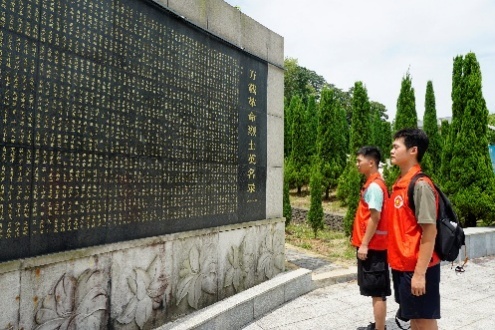 最后队员们走进万载县革命烈士陵园,陵园面水背山、苍松掩映,气势恢宏“人民英雄永垂不朽”纪念碑庄严矗立。队员们在两旁了解万载革命英烈的英勇事迹,感悟烈士的崇高爱国奉献精神,随后来到革命烈士纪念碑前瞻仰,碑体左侧为开国元勋彭德怀亲撰“先烈之血浇成了革命之花”,右侧是开国上将傅秋涛手书“红军烈士永远光荣”。丰碑长在,英雄永存,队员们将深刻铭记万载这段历史,铭记先烈英勇无畏的精神。