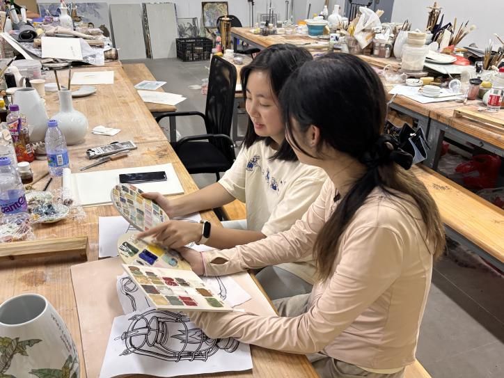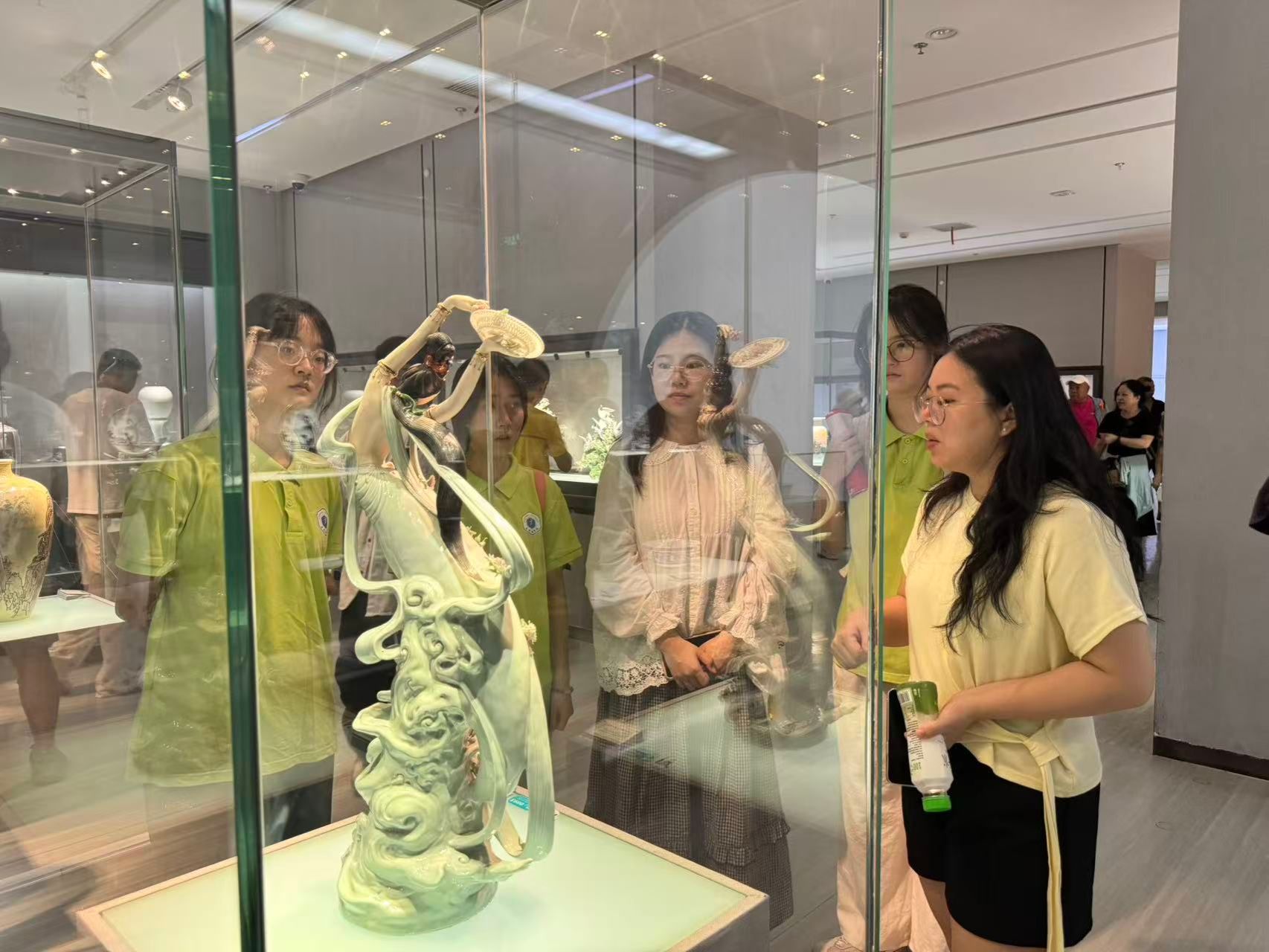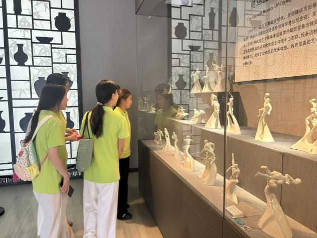 中国陶瓷博物馆是国内首家陶瓷专题博物馆,也是国家一级博物馆、爱国主义教育示范基地。在博物馆陶瓷珍品展区,吴欢蓓老师细腻生动讲解一件件革命主题陶瓷,从革命时期的日常陶瓷器皿造型,到新中国成立后彰显时代风貌的红色主题陶瓷版画、雕塑,在不同历史阶段,陶瓷作为媒介承载了重要文化意义与红色内涵。队员们通过此次实践活动,进一步理解了红色陶瓷作品背后蕴含的民族精神与红色基因。
