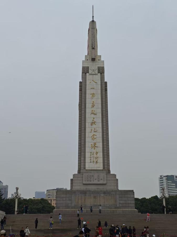 八一南昌起义纪念塔在广场中央巍然矗立,鎏金大字熠熠生辉,队员们列队肃立塔前,目光聚焦塔身浮雕:起义军举枪冲锋的呐喊、百姓送粮前的热忱、战士们坚毅不屈的面容,生动复刻着1927年那个改写历史的黎明。