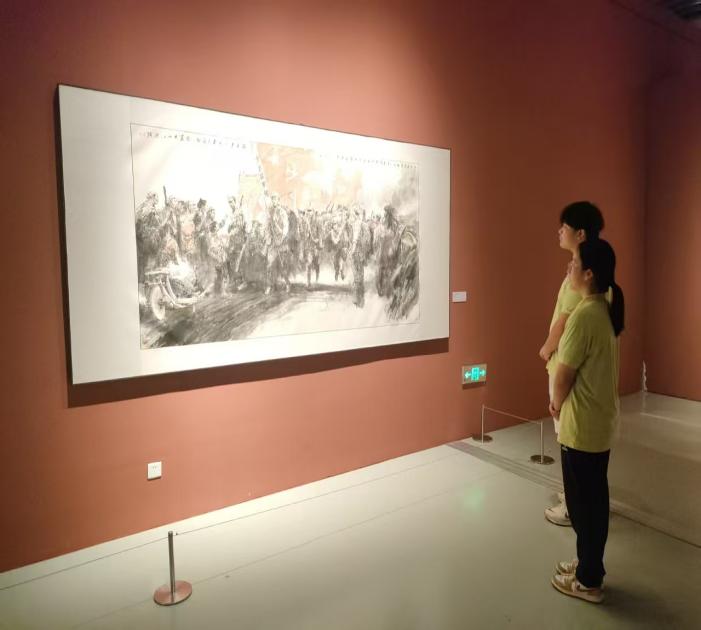 江西展览中心的红色展厅,藏着江西革命史的“视觉密码”。刚进馆,正立面的井冈山里程碑浮雕便拉满历史氛围,而展厅内的作品更让人沉浸式触摸红色记忆。版画里,安源路矿工人的抗争姿态力透纸背;油画中,井冈山的烽火与绿意交织,重现“星星之火”的壮阔;国画里,于都河畔红军长征出发的场景,满是军民同心的温情。这些作品不是简单复刻历史,而是用艺术赋予史料温度。