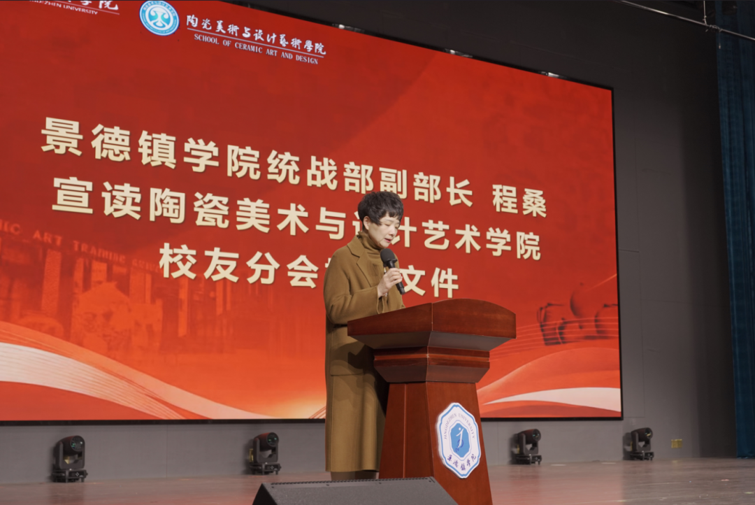 景德镇学院党委统战部副部长程桑宣读了《关于同意成立景德镇学院陶瓷美术与设计艺术学院校友分会的函》,明确了校友会的使命与方向。