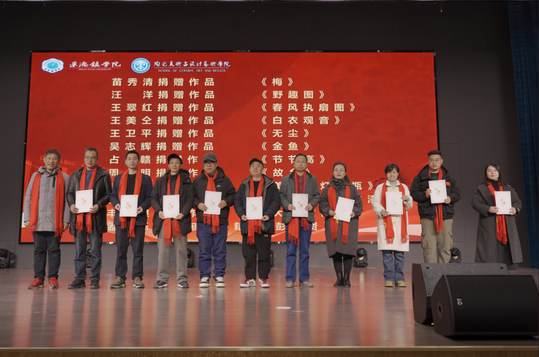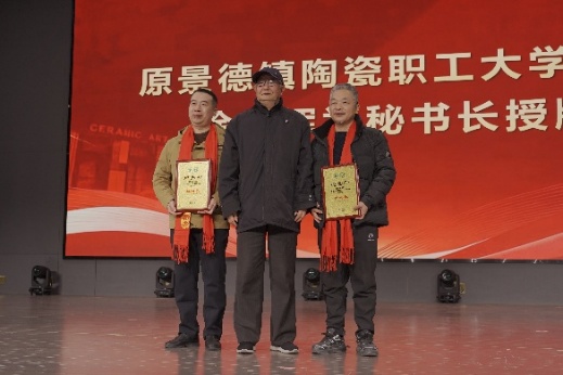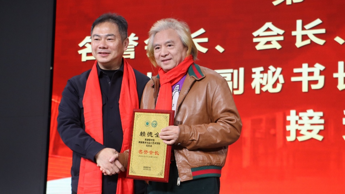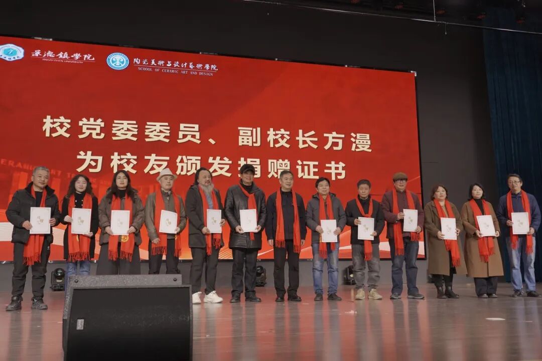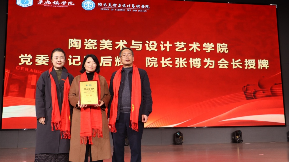 方漫为景德镇学院陶瓷美术与设计艺术学院校友分会成立揭牌,并为名誉会长中国工艺美术大师赖德全颁发聘书;陈后辉、张博为会长中国陶瓷设计艺术大师蔡玲玲颁发聘书;黄志坚、赵雪政为出席成立大会的顾问中国工艺美术大师李文跃、孙燕明、王卫平,中国陶瓷艺术大师周鹏、吴天麟,中国陶瓷设计艺术大师徐小云颁发聘书;徐文辉为秘书长揭金平、卢振邦颁发聘书;张学文、罗学正、郑丰银为副会长洪水泉、占昌赣、周明、梁小平、吴志辉、汪洋、胡文峰、黄青、程幸、余欣、胡泊颁发聘书;程桑、高颖、方愉、洪超为副秘书长罗丹、徐英、吴和龙、王美仝、王翠红、陈文杰、张志军、兰玉萍、吴坚、孟铃烁、廖雪颁发聘书;胡文毅、程幸、朱希睿为常务理事孙立新、吴燕、涂良如、唐德贵、徐荣辉、李兵、黄琼、李少景、范双梅、吴兰芳、陈云开、汪淑珍、钱梅玲、李青山、刘中荣、刘毅、徐建建、刘军、彭松、丰良、吴军勇、黄晓红、徐靖、李国红、江振声、杨杰、许玉华、苗秀清、钟起保、熊金荣、王祖京、万文娜、江葆华、李映华、全桔元、盛炳华、余千松、阿柔娜、张新景、范洋颁发聘书。
