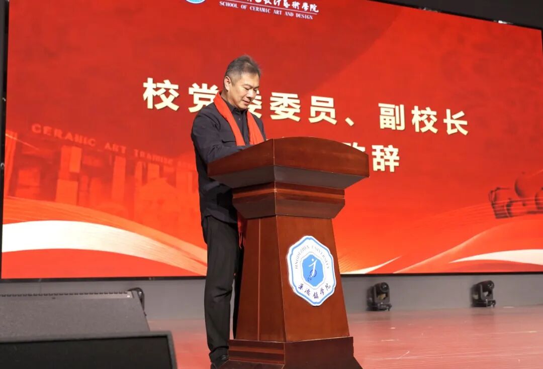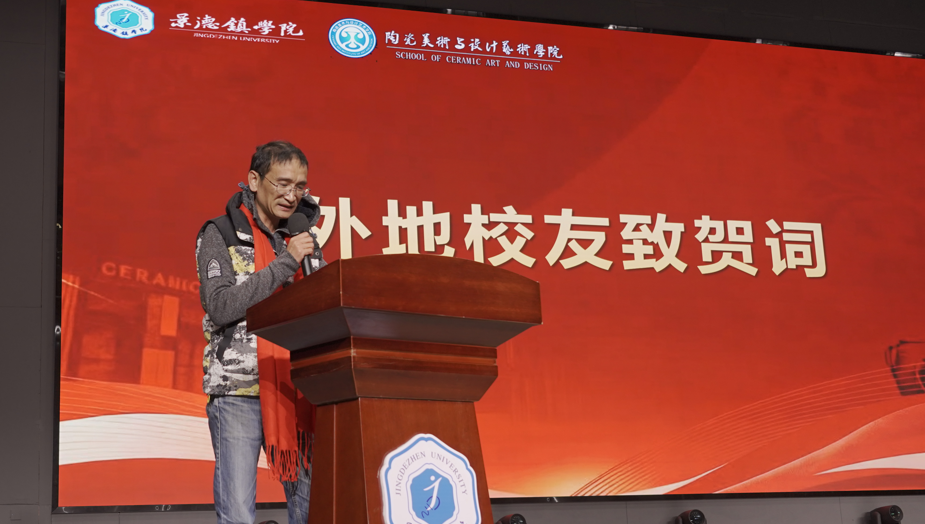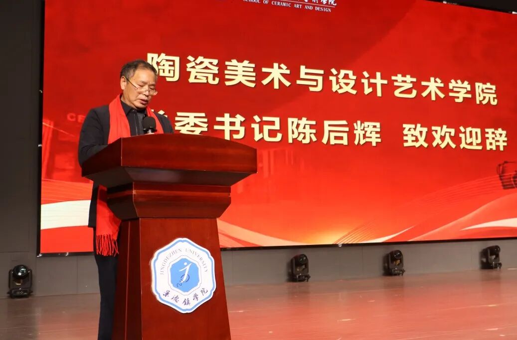 陶瓷美术与设计艺术学院党委书记陈后辉致欢迎辞,他表示各位校友是学院历史最生动的注脚,是学院发展最宝贵的财富,更是学院最靓丽的名片,在广大校友的鼎力支持与积极参与下,校友会必将成为一个有温度、有活力、有作为的大家庭,成为所有校友终身眷念、共同守护的美好家园。