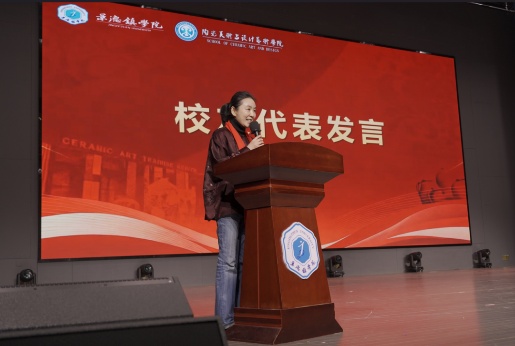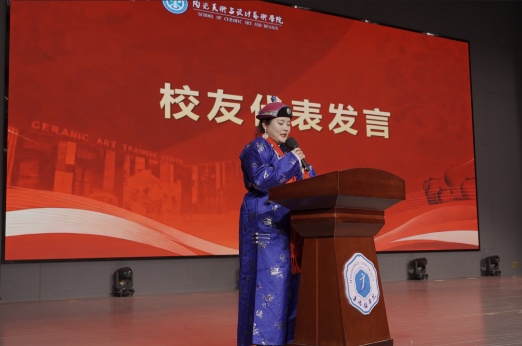 景德镇学院上海校友会副会长、1999级陶美专业陈璟致贺词,校友代表1995届陶美专业校友黄青、2020届陶瓷设计与工艺专业阿柔娜分别进行发言,朴实的话语中,满是对母校的眷恋,毕业后奋斗的历程里,尽显瓷艺人的匠心。