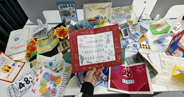 小小的卡片,看似毫不起眼,然而却因为其中所蕴含的真挚情感以及独具匠心的创意而显得熠熠生辉,散发出别样的光彩。每一张精心制作的贺卡,都承载着景院学子满满的心意,对学校最美好、最诚挚的祝福。愿亲爱的景院,步履坚定,乘风而行,永远朝气蓬勃。在新的征程上,继续书写精彩篇章,桃李满天下,前路更宽广!