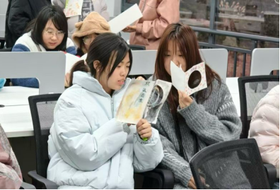 追溯至1977年12月,景德镇市教师红专学校(景德镇学院前身)获批设立。自此,学校开启了为党培育人才、为国输送栋梁的光荣历程。这段始于改革开放前夕的办学历史,蕴含着一代又一代师生艰苦奋斗、追求卓越的精神传承,也为当下的我们留存了“自强不息、砥砺奋进”的精神财富。本次活动以贺卡为媒介,邀请同学们一起重温校史、品味校训、表达对学校的心意。活动现场,同学们跃跃欲试,将缤纷的彩纸与心中对学校的祝福折叠在一起,将校门、图书馆、操场这些熟悉的场景融入贺卡制作,让校园记忆、红色精神与爱校荣校之情在贺卡中悄然延续。