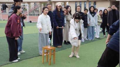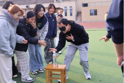 本次活动共分三大环节,涵盖“团团抱”“蒙眼弹瓶盖”“筷子夹乒乓球”“绳有千千结”等多个趣味项目。师生默契协作、积极互动,在趣味比拼中释放活力、增进信任、传递成长经验。每一次的助力与协作,都让大家深刻领悟到“人心齐,泰山移”的团队力量。