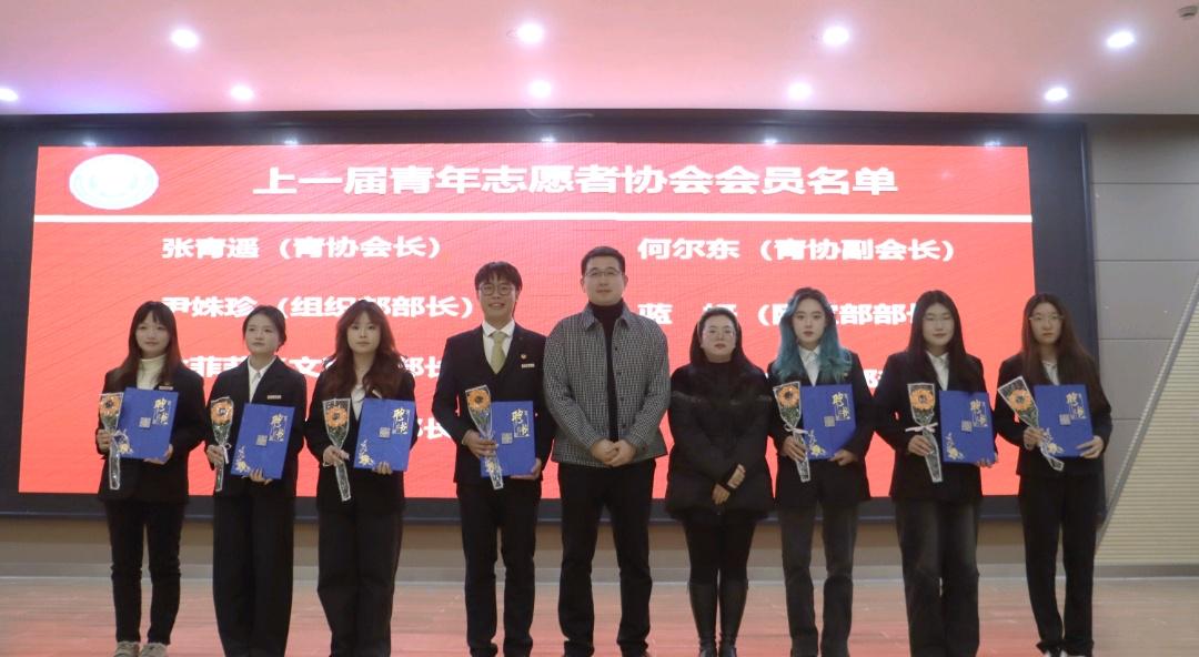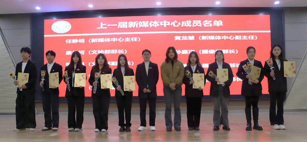 陶瓷美术与设计艺术学院党委书记陈后辉,副院长程幸、学工科副科长张朋、团委副书记曹星以及各学生组织指导老师分别对上一届团委、青年志愿者协会、新媒体中心学生干部发放聘书和鲜花并给予鼓励,感谢大家过去一年为学院做出的重要贡献。