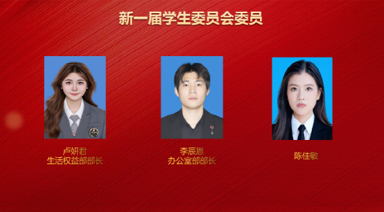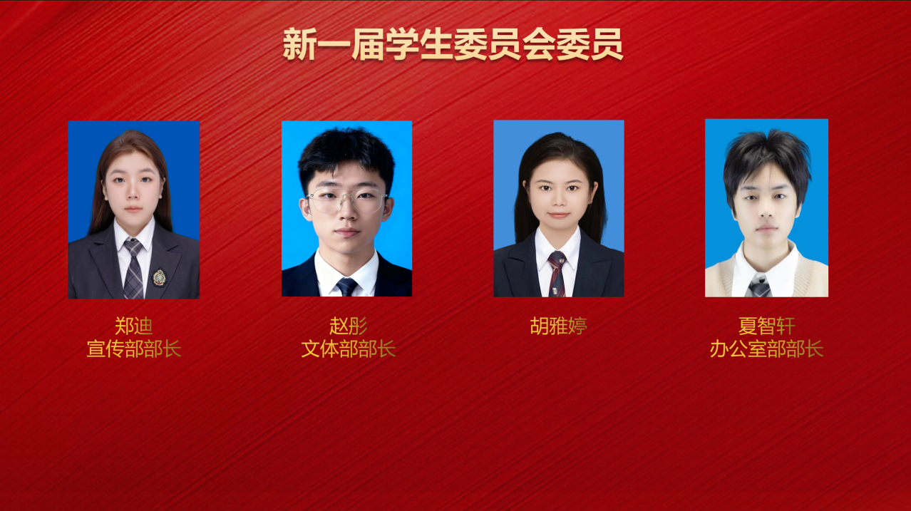 学生委员会委员:于佳梦 王宏武 王靖涵 卢妍君 李辰恩 罗宇轩 罗喆 周丽梦 郑迪 康樟英 赵彤 夏智轩 晁诗颜 熊子瑶。