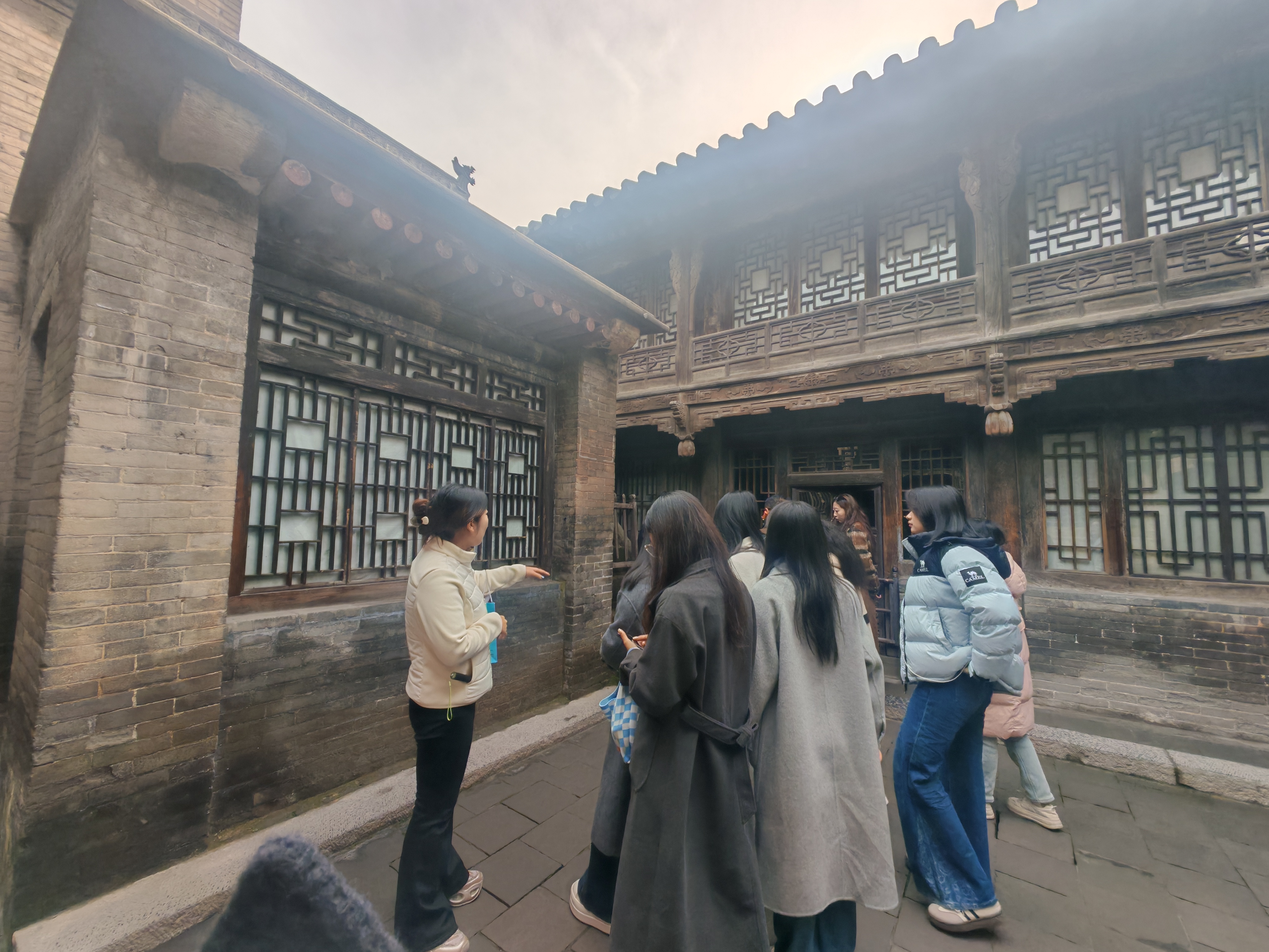 山西被誉为“中国古代建筑博物馆”,每一处遗存皆是环境设计的活教材。在王家大院,同学们沉浸式感受“民间故宫”的空间哲学,细究斗拱榫卯结构与院落采光通风设计,深刻领悟传统建筑“天人合一”的营造逻辑,明晰环境设计对空间与人文、自然的和谐把控核心。