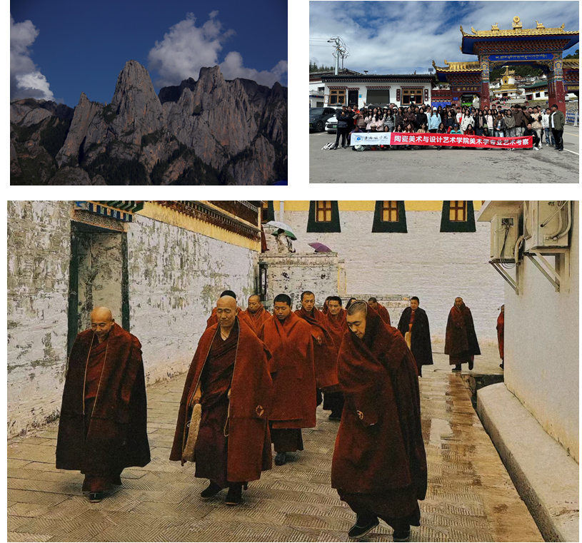 甘南的风,裹挟着藏地特有的人文气息,吹过扎尕那的奇峰村落,掠过郎木寺的金顶红墙,漫过拉卜楞寺的转经长廊。这里的色彩浓烈而纯粹,经幡的红、白、蓝、绿、黄,寺庙的赭红墙体与鎏金屋顶,村落民居的质朴木色,成为美术学专业师生眼中的色彩宝库,他们用画笔定格光影下的金顶、云雾中的村寨,将藏地的热烈与静谧凝于画纸之上。藏式碉楼旁立着回族清真寺,转经老人与戴白帽的商贩点头问好。甜茶馆里,老板娘用藏语迎僧人、用汉语劝游客尝酥油茶,牛粪火与牛肉面香交织,多民族的和谐是刻在烟火里的默契。郎木寺藏传佛教格鲁派寺院,僧人的辩经声撞在石墙上又弹向山谷。他们击掌、踱步,藏语的诘问掷地有声。虽听不懂经文,但那股对信仰的较真劲儿,让“藏传佛教仪式”不再是论文里的抽象概念,而是鲜活的日常。