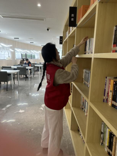 春节期间,22雕塑1班赵可盈投身江西省南昌市青山湖区社区图书馆的春节志愿服务,负责整理书架、引导借阅等工作,用“窑火红”的热情点亮社区的文化角落。此次志愿服务让她体会到基层文化服务的重要意义。当看到读者们沉浸在阅读中的专注神情,特别是孩子们在故事角欢快的笑声,她深刻体会到坚守平凡岗位的价值所在。