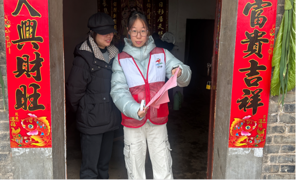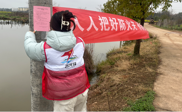 23美术学1班周鑫龙在江西省九江市修水县西港镇楼前村参与了防火、防盗、防诈骗及烟花爆竹安全管理宣传志愿服务。他走进村民家中,用通俗语言讲解安全知识,帮助老人排查隐患、提醒防范诈骗,让“窑火红”的温暖照耀在乡村的每个角落。此次志愿服务让他认识到作为青年党员,既要坚定理想信念,更要主动下沉一线,把初心落在行动上、把使命担在肩膀上。