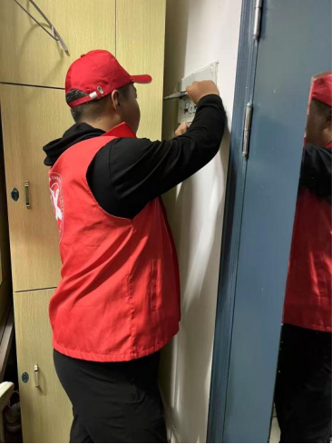 22产品设计3班谢隆星在寒假期间来到江西省赣州市于都县上欧思源社区,深入辖区内居民小区和楼栋楼道开展安全治理志愿服务工作。他仔细检查每一处消防通道,关注居民燃气使用安全,让“窑火红”成为守护社区安全的醒目底色。此次实践不仅提升了他的安全防范意识与责任意识,也让他感受到志愿服务的价值。