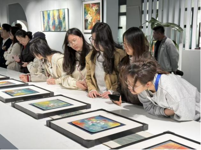 为深化班级学风建设,推动专业学习与艺术实践深度融合,3月14日,艺术学院党委书记陈后辉,党委副书记、纪委书记胡文毅,辅导员朱顺翔以及他所带2025级工艺美术专业20余名学生代表前往景德镇市龙珠瓷画院艺术馆,参加黄萍教授“色釉泼彩大千,留光溢彩万象”当代陶瓷艺术大展开幕式,并现场观展学习。