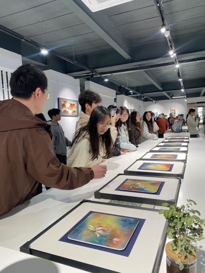 开幕式现场高朋满座,汇聚中国工艺美术大师、高校学者、媒体代表及陶瓷行业从业者百余人,学术氛围浓厚、交流氛围热烈。黄萍教授的艺术世界干净纯粹、诗意盎然,创作从丰盈走向简约、从具象走向空灵。风清荷香、鱼游空碧,寥寥数笔便意境自生,作品以传统为根基、以当代为延伸,兼具哲学思考与疗愈力量,为同学们带来了一场沉浸式美育与专业启蒙。