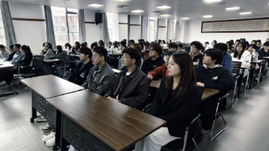 宣讲环节,四位优秀学生代表分享实践事迹与感悟。聂靖鑫分享申报返家乡岗位的经验与志愿工作中难题解决的方法,赵婷艳坚守调研一线践行螺丝钉精神,毛习祯聚焦特殊群体传递温暖,徐恬扎根政务实践锤炼本领、深化认知。他们用鲜活真实的基层经历,生动诠释了为人民服务的雷锋精神,既展现出青年学子在 “返家乡” 实践中的成长与蜕变,更彰显了新时代大学生扎根基层、服务家乡、勇担使命的青春担当。